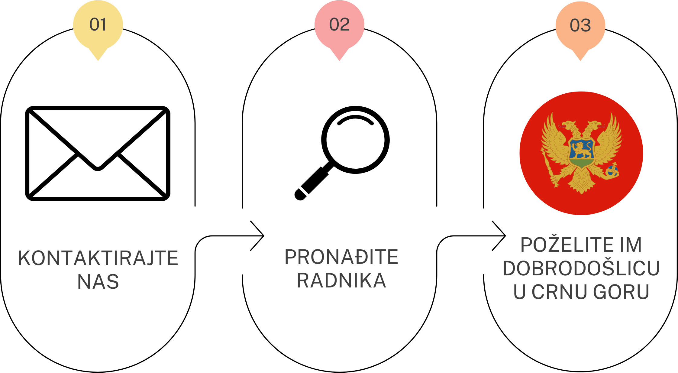 Naš cilj je pomoći vam da pronađete izuzetne pojedince iz bilo kog dela svijeta. Vjerujemo da talenat nema granica, stoga smo posvećeni omogućavanju pristupa najboljim kandidatima, bez obzira odakle dolaze. Nastojimo vas povezati s najboljim globalnim talentima i učiniti vaš proces zapošljavanja što jednostavnijim. Mi smo vaše sve-u-jednom riješenje za zapošljavanje talenata. Naš sveobuhvatan pristup podrazumjeva svaki aspekt regrutacije. Počinjemo identifikacijom idealnog kandidata za vaše potrebe, bez obzira gde se nalaze u svetu. Zatim se brinemo o svim potrebnim dokumentima, uključujući vize i radne dozvole, pojednostavljujući birokratske procese. Na kraju, obezbeđujemo glatku tranziciju rezervišući njihove putne aranžmane direktno za Crnu Goru, ostavljajući vas s bezbrižnim iskustvom od početka do kraja.